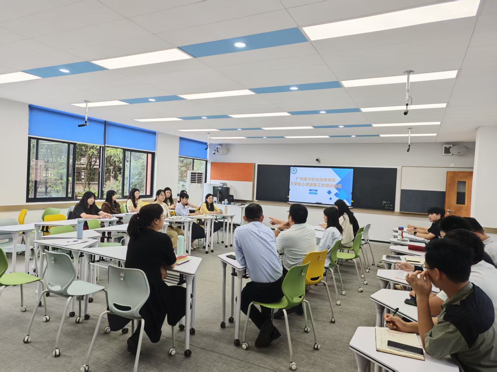 为进一步提升我校心理健康教育工作水平,增强学生工作队伍的心理危机干预能力,构建平安和谐校园,广州康大职业技术学院学生处于2025年10月27日在综合楼307举办“大学生心理健康工作培训会议”,全体学生工作人员参加。